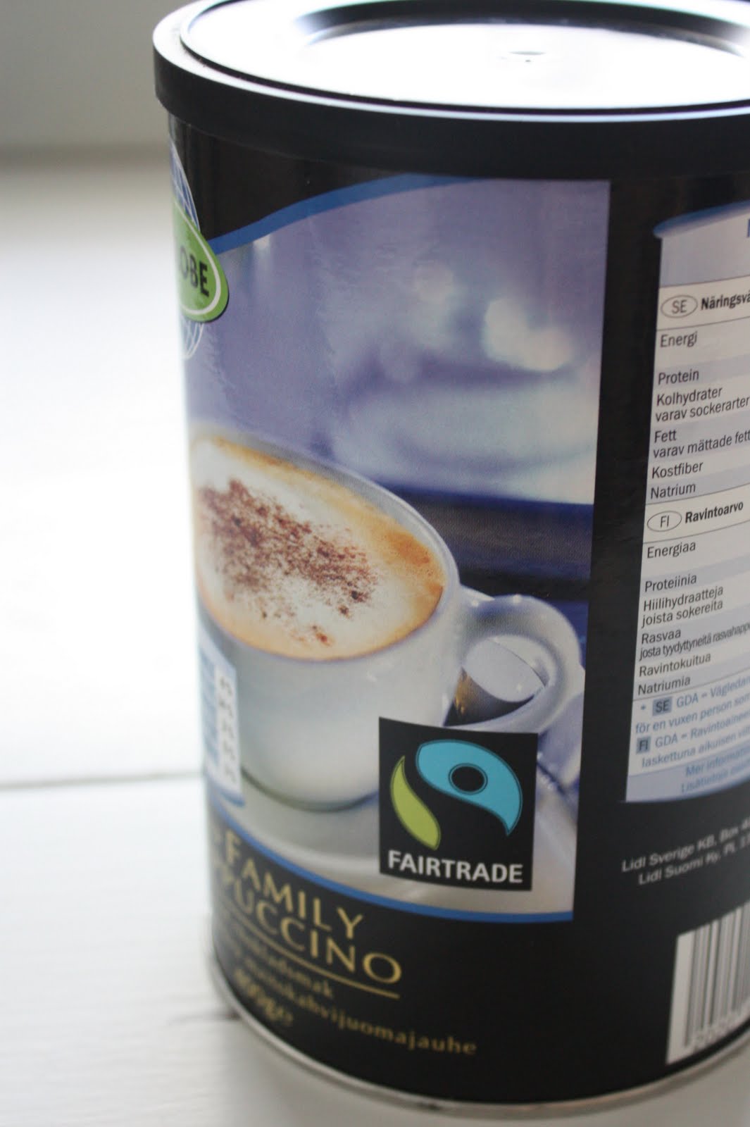 Eilen illalla käväistiin Lidlissä, ja löysin reilunkaupan cappuccino jauheen. Aika hyvää, ja vie muuten sen suurimman makeanhimon mennessään. Kuppi kuumaa maistuu taas pahimpien helteiden väistyttyä.