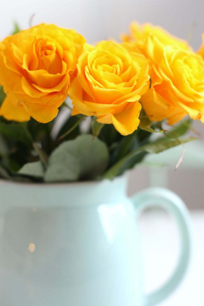 >Ihanaiset keltaiset ruusut loikkaa kuvasta ja täräyttää kevät energiaa kehiin! Feng Shuissa on varmasti monia hyviä periaatteita (turhan tavaran karsiminen, siistit pinnat…), mutta minua ei esim häiritse "keihäänkärjet" makuuhuoneessa, joita voivat olla esim. teräväkärkiset kasvit. Hyvin on uni tullut, eikä ole ollut woodoo-painajaisia, vaikka makkarissa on traakkipuu.