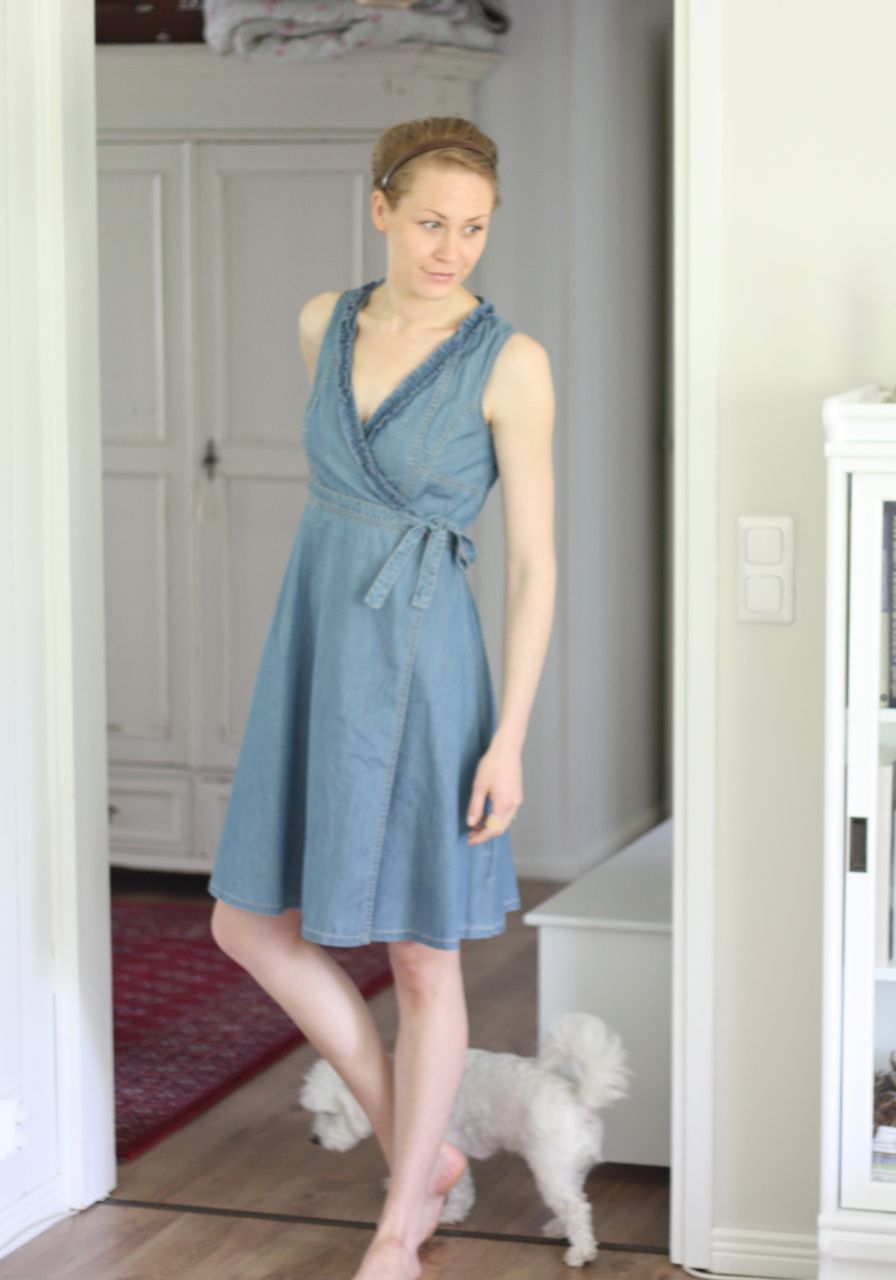 Kolmella kympillä mekko, joka tulee varmaan olemaan kesällä kovassa käytössä. Kietaisumekko on itseasiassa ollut hakusessa, ja tää on just passeli täyttämään tuon aukon. Helppo asustaa eri näiköiseksi mielialan mukaan.