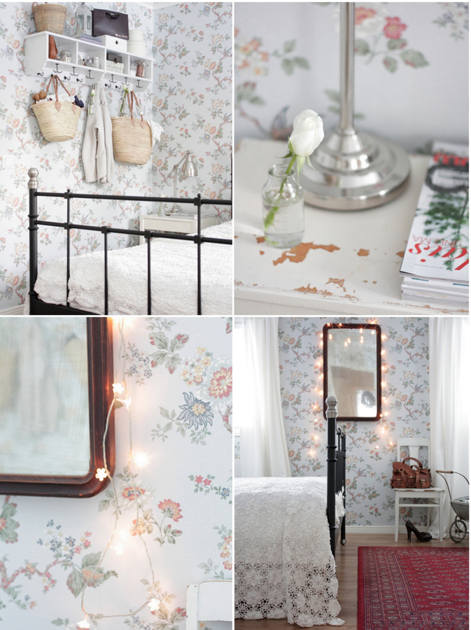 >Voi että..ihana, kaunis, sopivan hempeä, valosa, raikas ja kertakaikkiaan vaan niin IHANA makkari! <3 Ja onneksi oot jo tottunu tapettiin! Son maailman ihanin just tuonne teän huoneeseen 🙂 Ja matto passaa antaan ryhtiä ja tapetissaki näyttäis olleen punasta sävyä 🙂 Ja tuo päiväpeitto, upea!!! Meillä kans minun mummon virkkaama päiväpeitto ja on kans maailman upein virkattu päiväpeitto ja just sen takia ko oma mummo tehny sen 🙂 Ei ihan nuin hieno ko tuo teän mutta aika lähelle pääsee :)Ihania ja raikkaita unia teän IHANAssa makkarissa 🙂