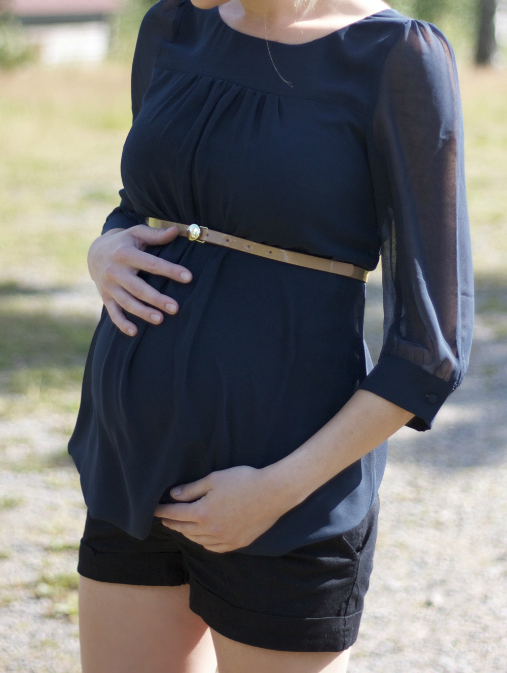 Nude ja tummansininen käyvät tosi nätisti yhteen! Ja ihanasti masu pyöristyy 🙂