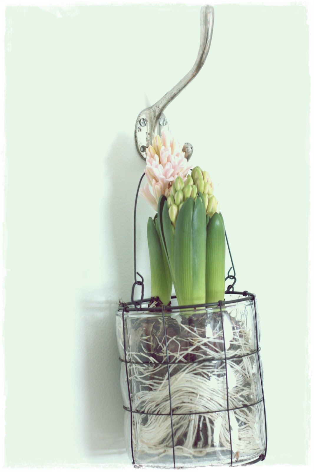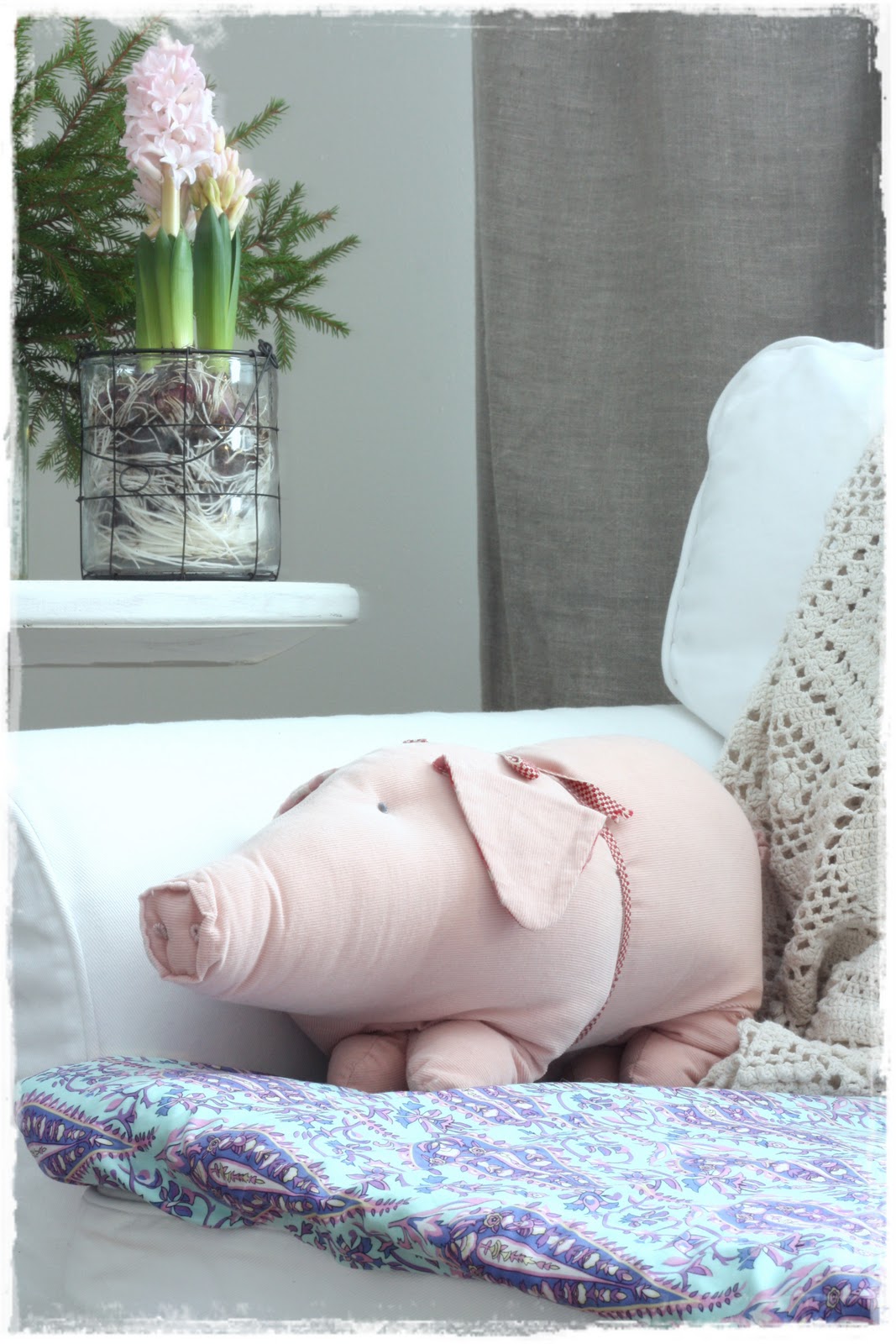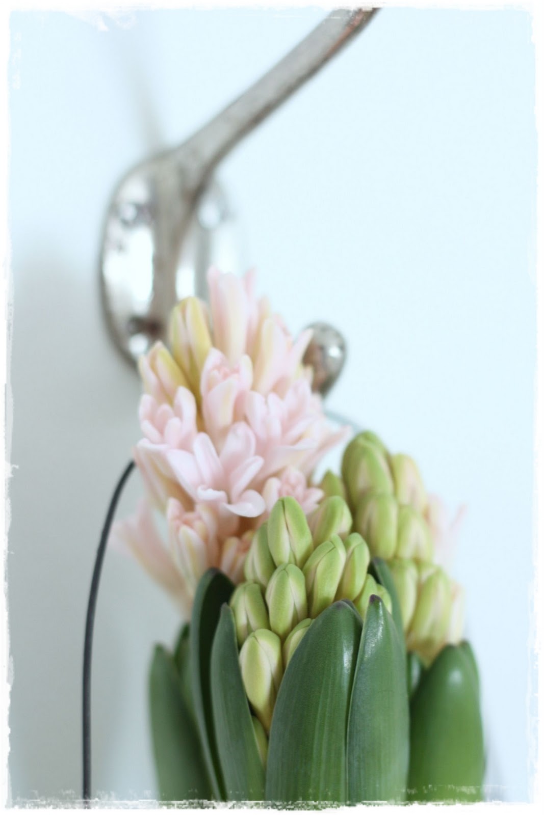 Eilen nappasin Indiskasta mukaani suloiset posliininupit, jotka näillä minuuteilla ovat paikallaan keittiön ja työhuoneen komeroissa. Huoneissa on vanhat kiinteät paikalleen rakennetut kaapit, ja niiden vetimet oli ihan vain miehen rautakaupasta pikaisesti nappaamat. Molempiin huoneisiin ollaan ajateltu piristävää Hyasintti -tapettia, ja siksi halusin jotain pientä ja vihreää jo kokeeksi.