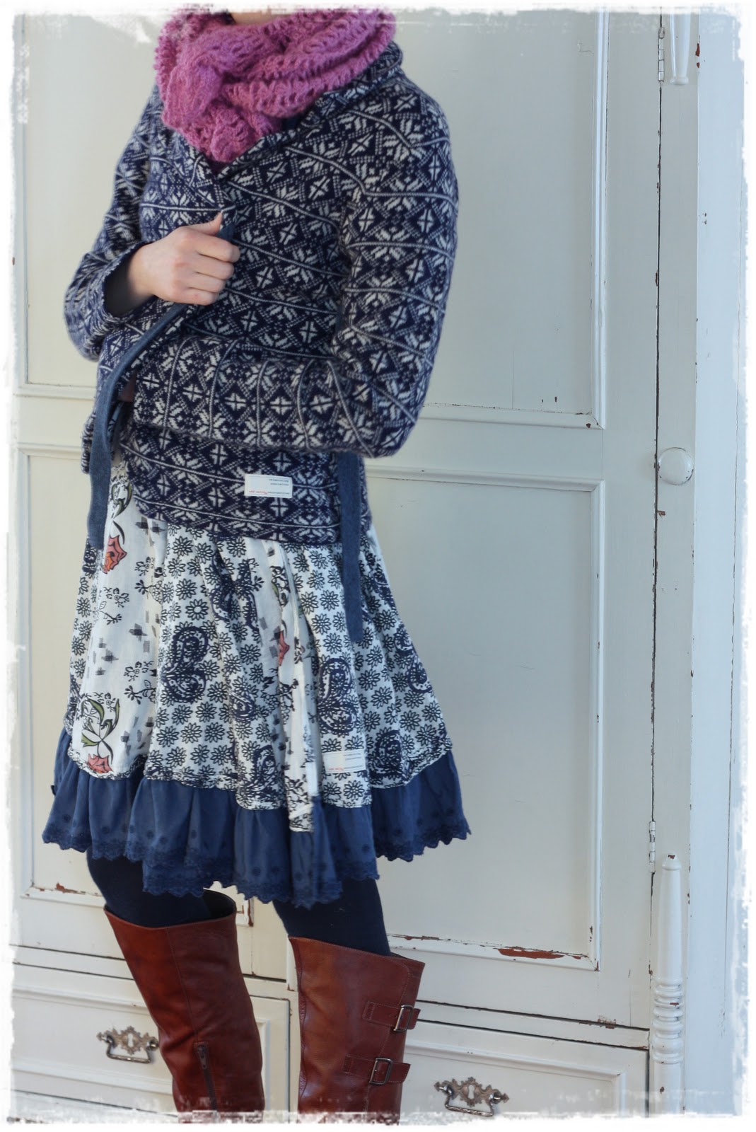 Taas on mekkoa kuvassa. Ihan vain todistaakseni, että mekkokuu on edelleen hengissä, vaikka pari päivää pyjaman housuissa menikin, ja välillä piti ulos sonnustautua ihan pitkiin ja lämpimiin lahkeisiin.