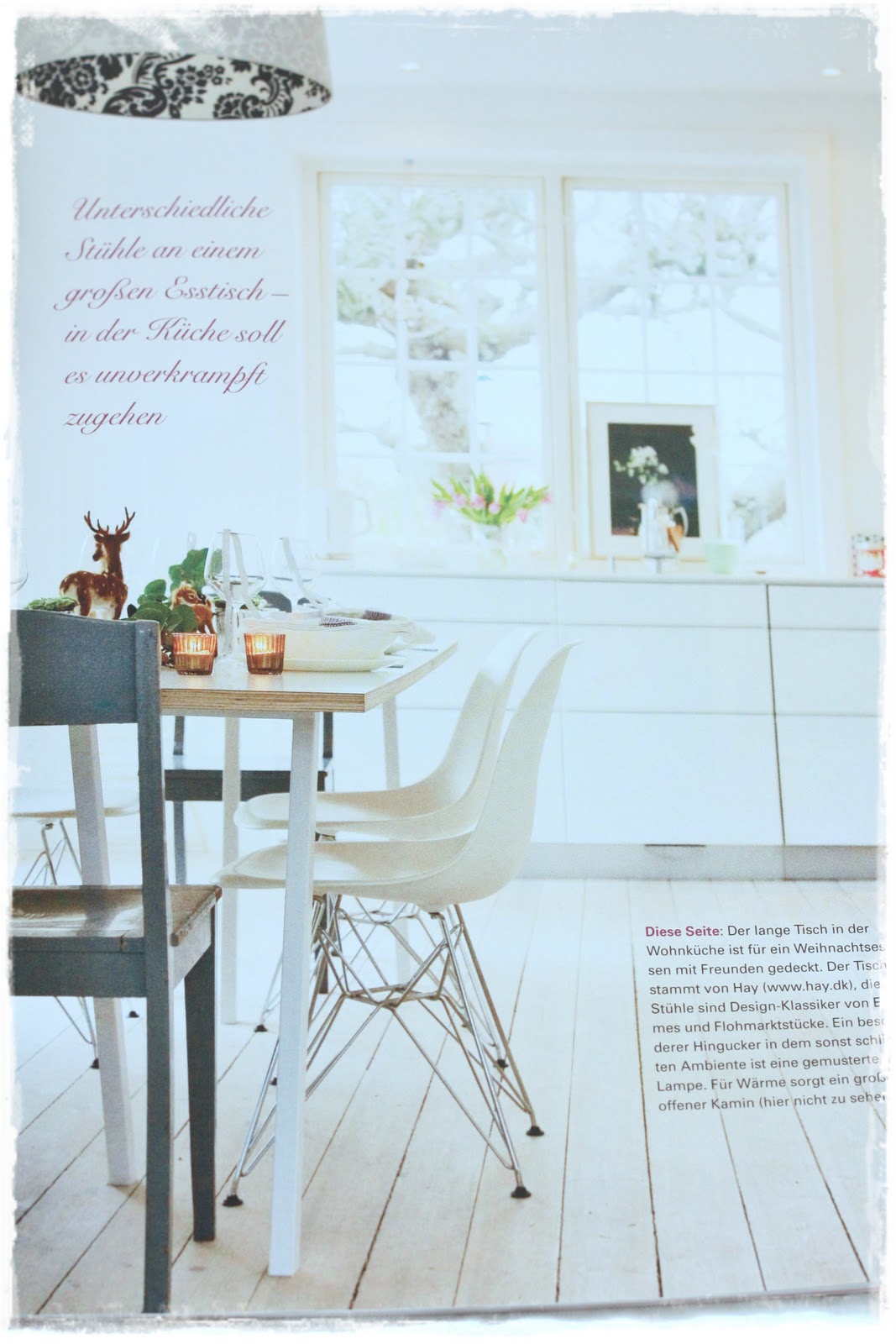 Voitin tässä taannoin arvonnan Miian Tunnelmaa -blogissa. Palkinnoksi Miia lähetti minulle haluamani joululehden. Annoin vapaat kädet lehden valitsemisessa, sillä rajoitteella, että kotimaiset lehdet olimme jo äidin kanssa kuta kuinkin hankkineet. Posti kantoi minulle pari viikkoa sitten Landhaus living -lehden. Sitä tuossa sairastellessani selailin, ja parhaat palat ajattelin jakaa kanssanne. Aivan mieletöntä tunnelmaa ja kuvia koko lehti täynnä! Kiitos siis Miialle!