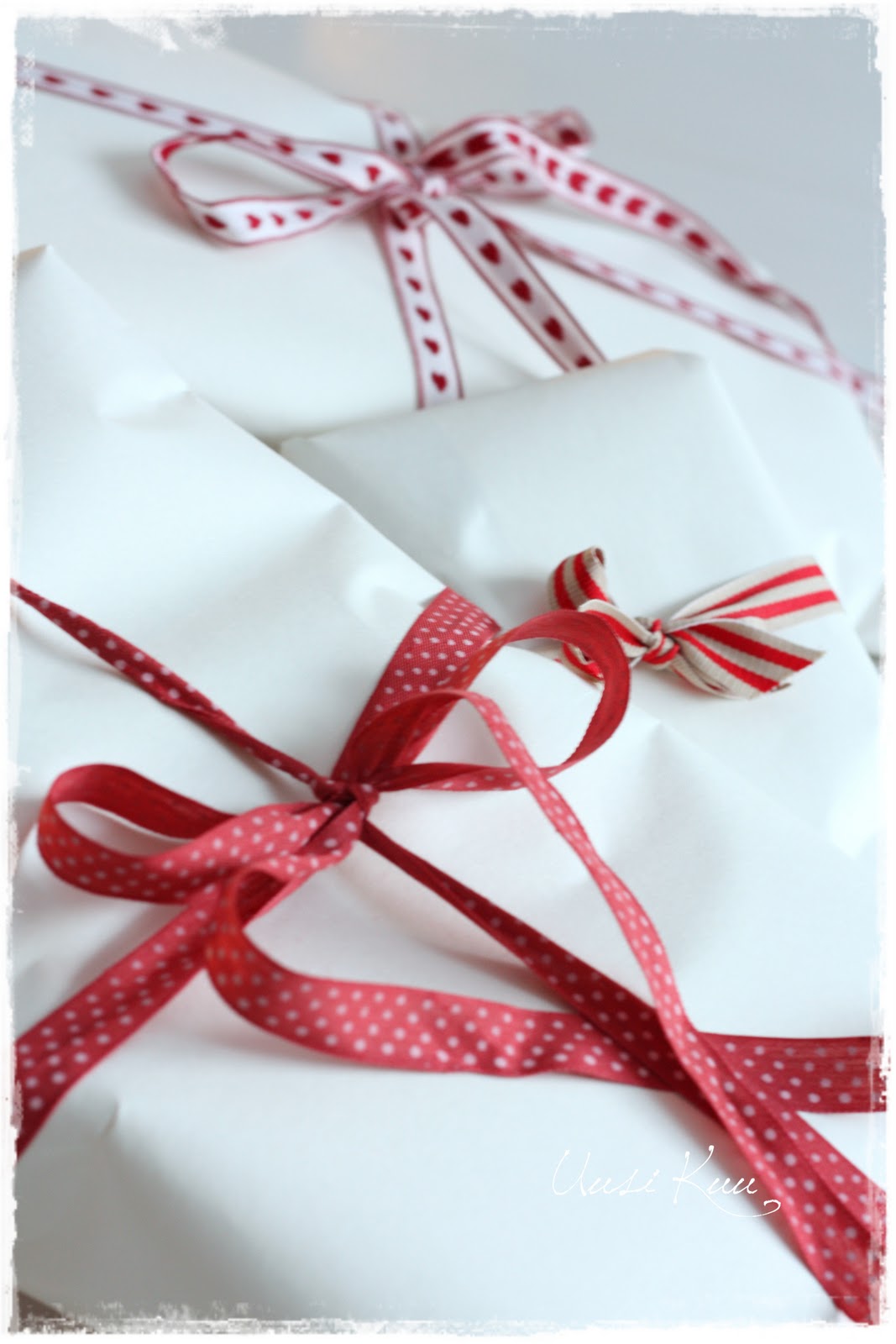 Lahjoja kääräisin viikonloppuna pakettiin sitä mukaa kuin jaksoin. Vauhti taisi olla paketti per kolme tuntia, mutta hoituuhan hommat hitaamminkin. Luonteeltani vain olen sellainen suitsait sukkelaan tyyppi, joten hidastaminen onnistuu vain pakon edessä.