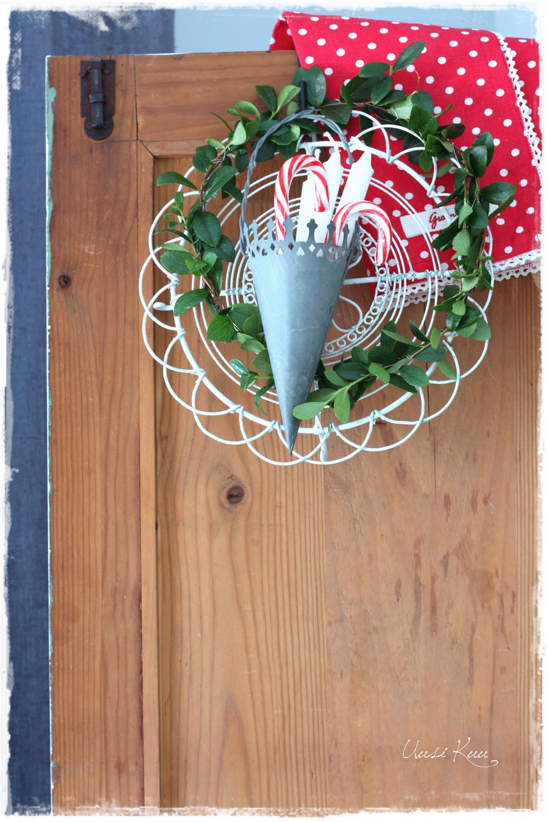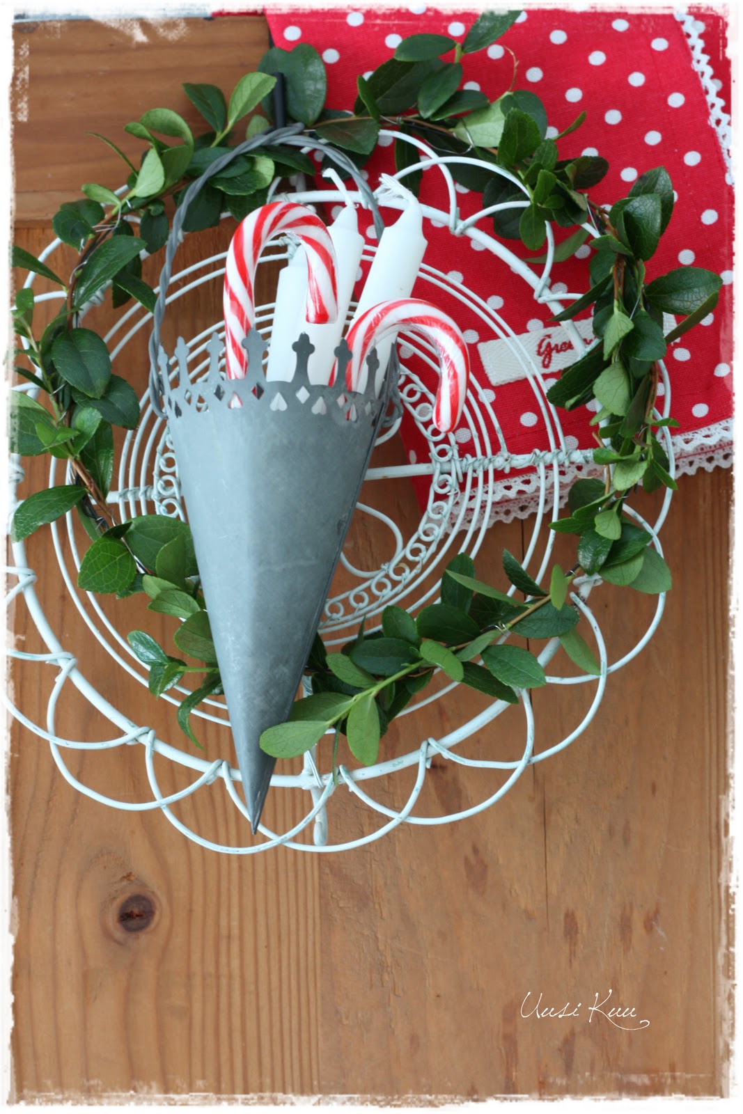 Tähän asetelmaan olisi sopinut myös trendikäät sarvet, mutta niitä ei tähän hätään ollut. Oliskohan tämä nyt hiukan vähemmän perinteistä joulua?