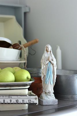 >Keräsin tässä viikonlopun aikana kaiken uskonnollisen madonnahössötyksen pois kodistamme. Samoin köyhänhopeat. Sulloin koreihin ja ihastelin tyhjiä pintoja. Samaa matkaa lähtivät pitsit ja nauhat. Meillä on oikeastaan aika alastonta! Okei, yhden madonnan, ensimmäiseni ja alkuperäisestä Ihanalivingistä ostetun, jätin möllöttämään jääkaapin päälle. Tabula rasa; Mulla on nyt sellainen. Mies oli enemmän kuin innoissaan tästä uskonnollisesta puhdistuksesta. Ihmetteli tätä tyhjyyttä ja kaiken romun määrää. Niin minäkin.